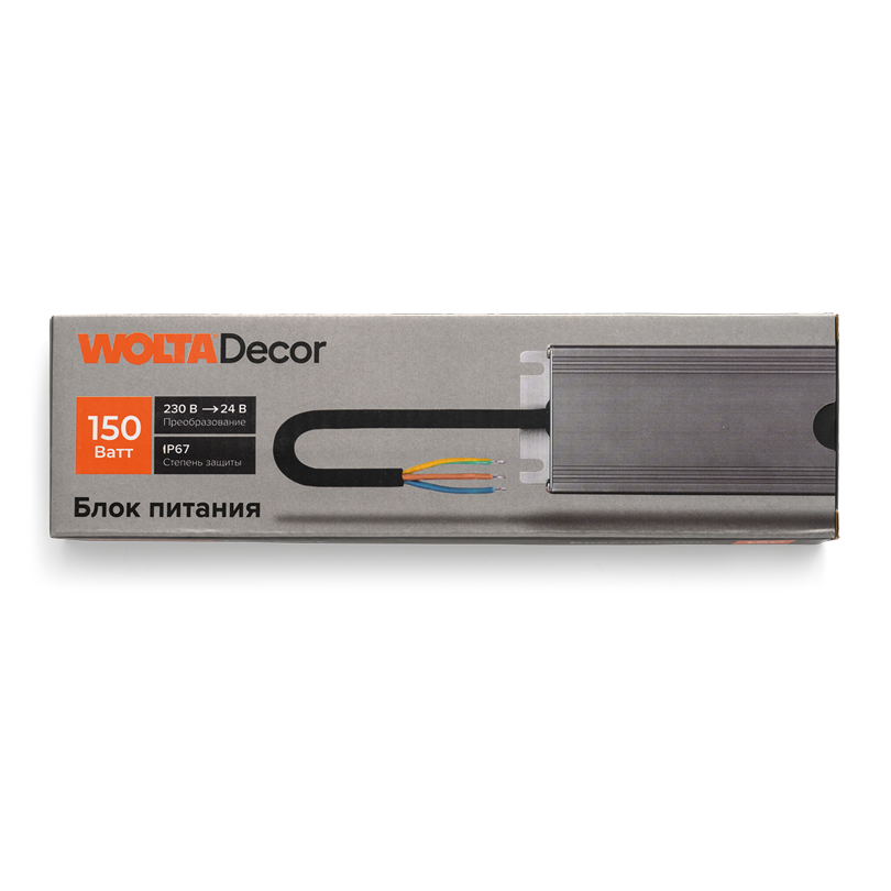 Блок питания WOLTA Decor WLD-150W/02-24V 150Вт 24В IP67 220х52х20мм