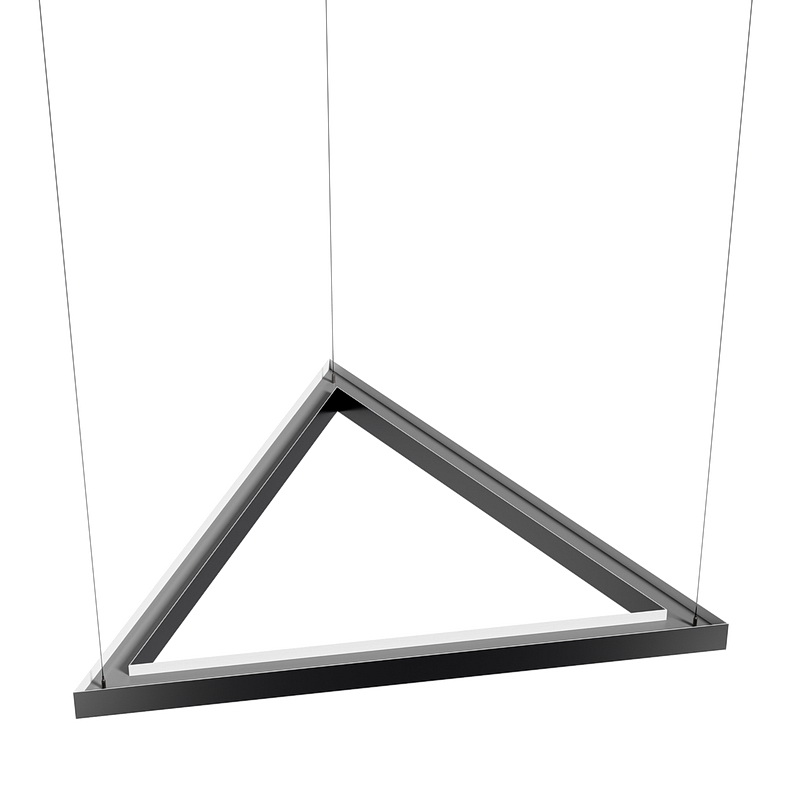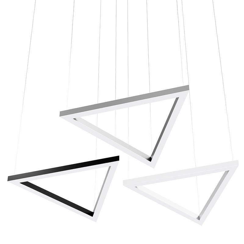 Корпус светильника треугольной формы может быть выполнен в черном, белом и сером цветах. Цветовая температура на выбор: теплый цвет (3000К), нейтральный (4000К) или холодный (6500К). Материал корпуса металл, размеры на выбор заказчика. Тип крепления: подвесной или накладной монтаж.